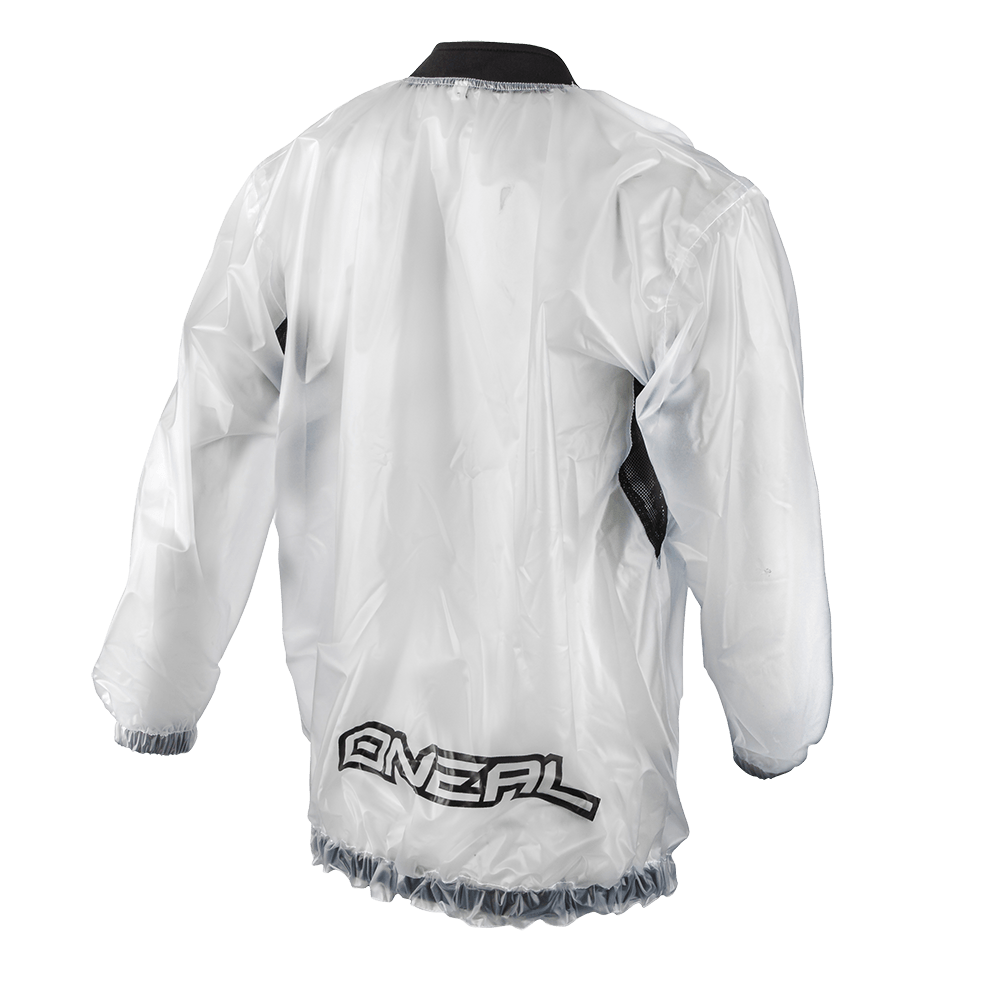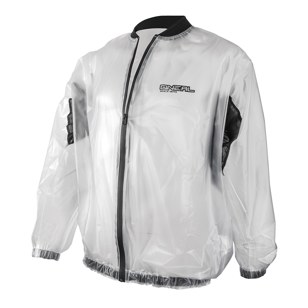 Veste tout- terrain transparente imperméable en PVC avec des élastiques aux manches et hanches et des coutures hydrofuges.